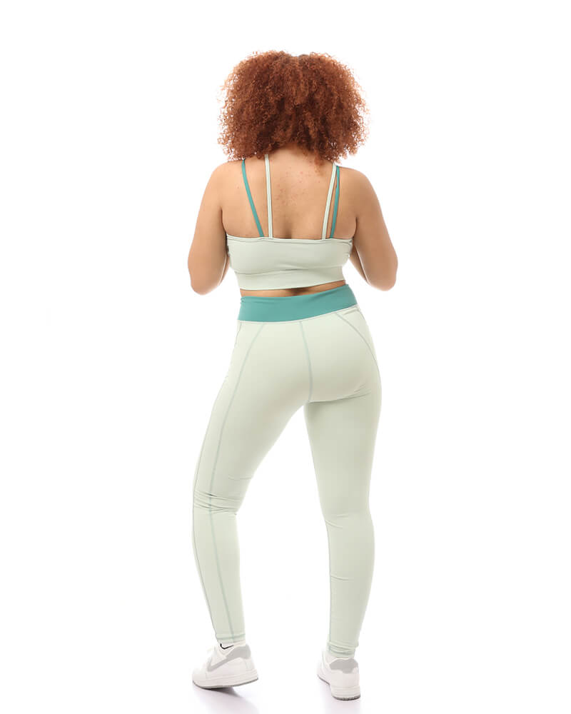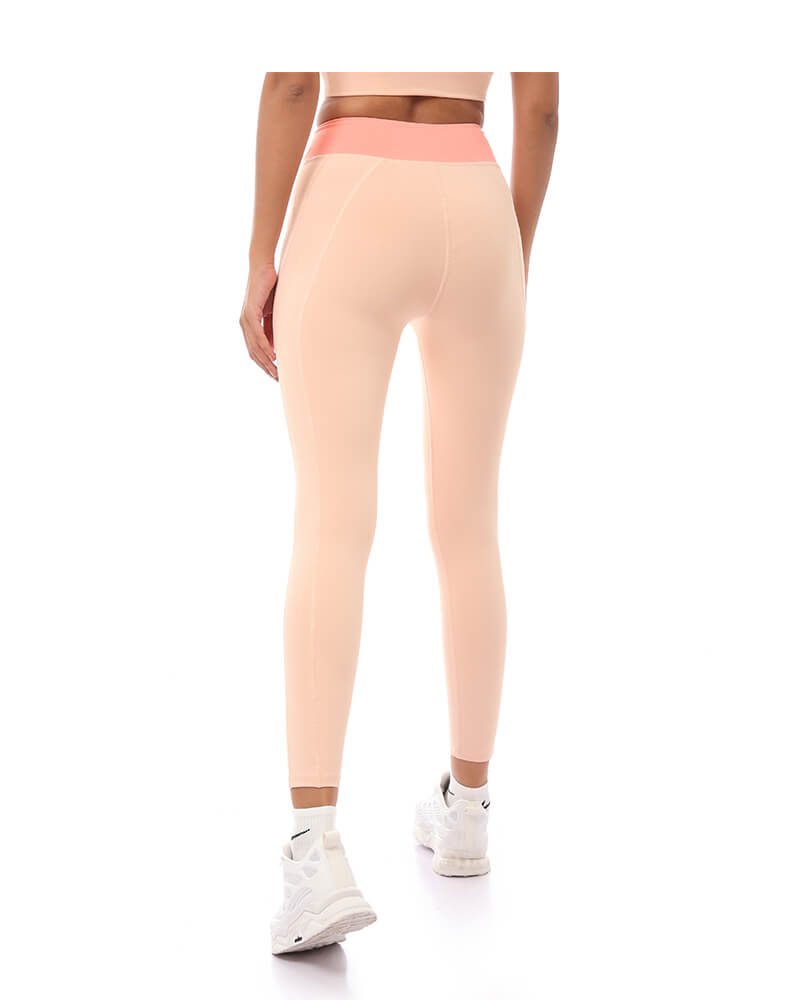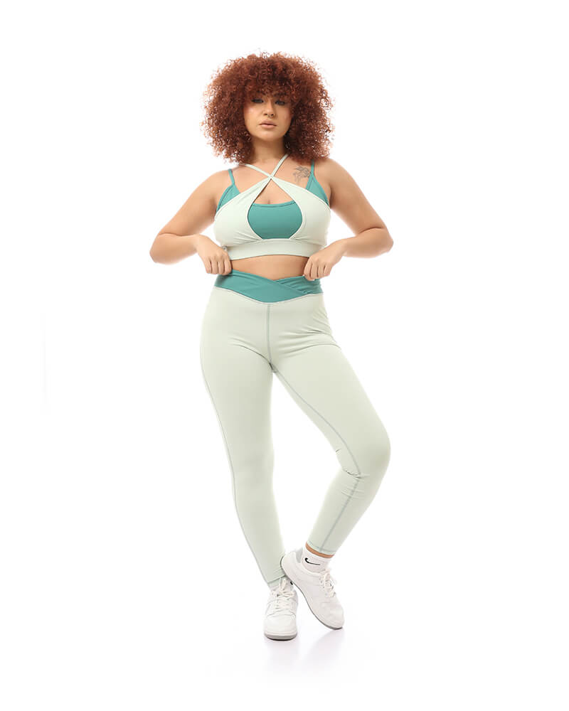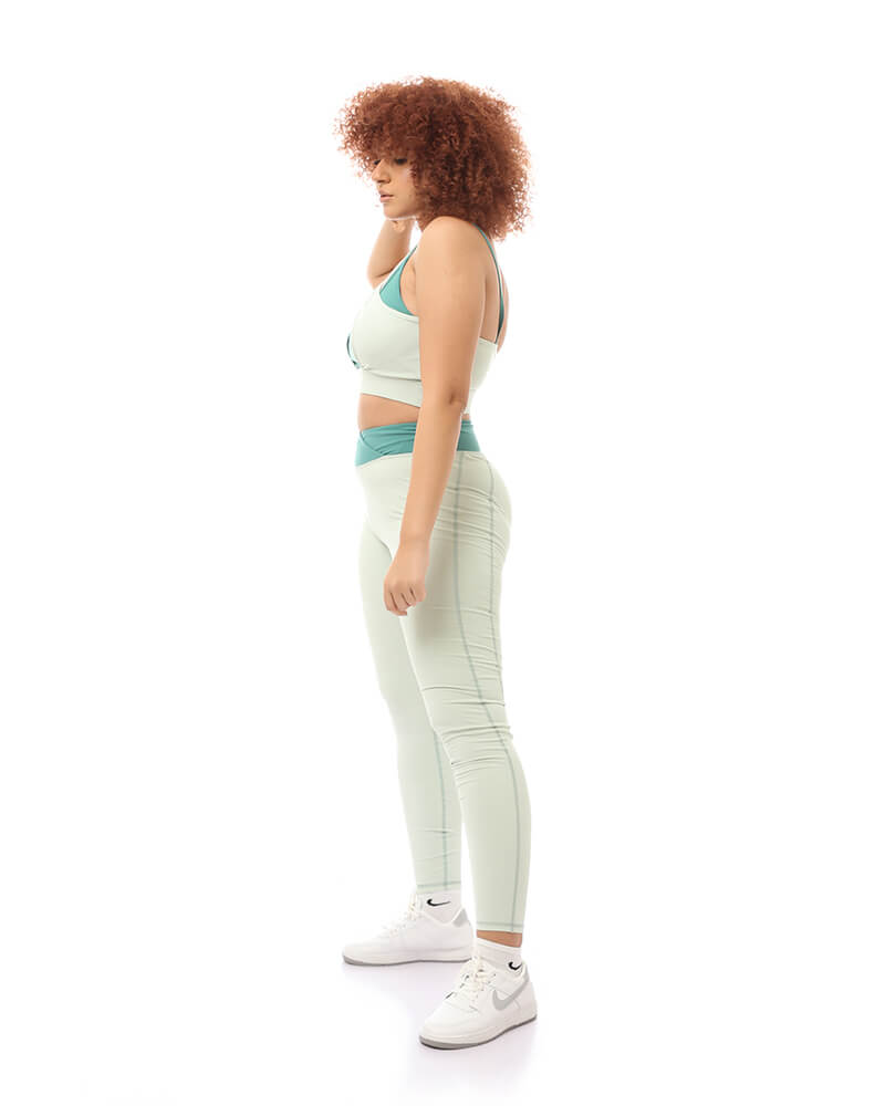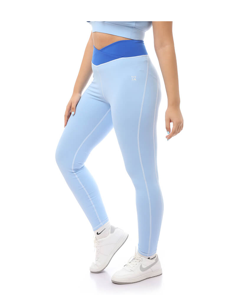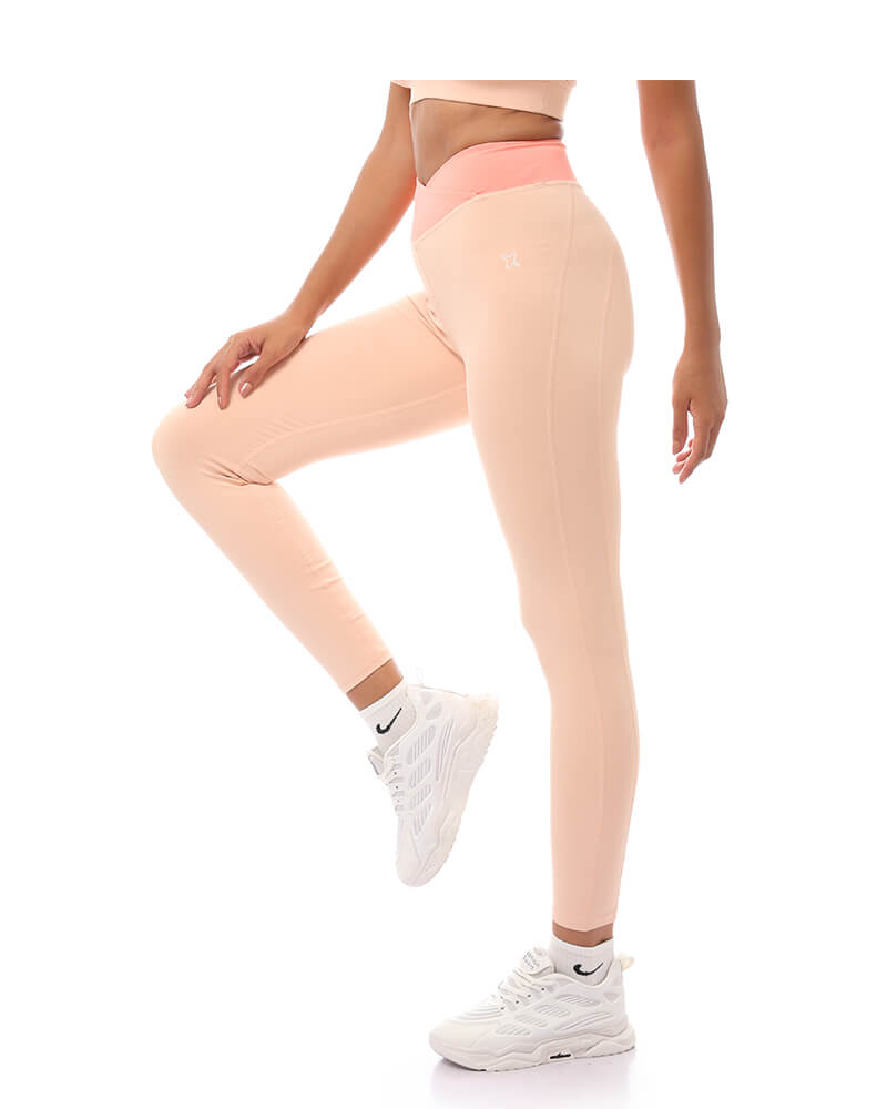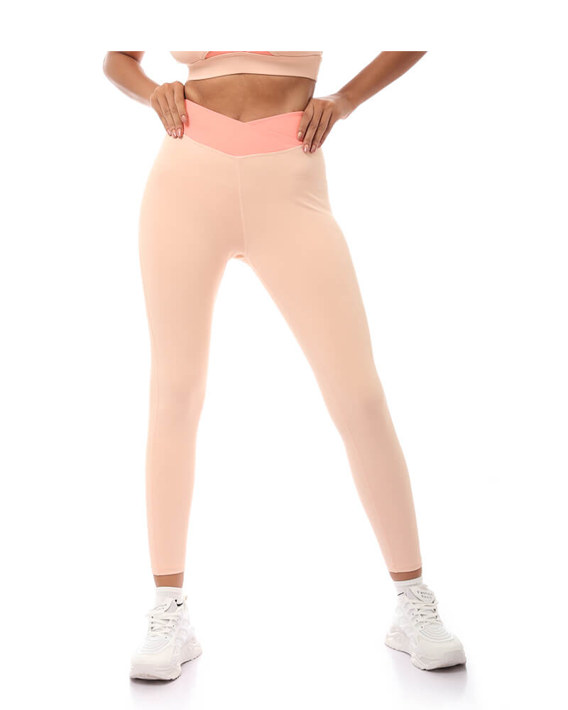 These gym leggings are made with smooth, slinky stretch fabric to provide non-slip support and ease of movement during workouts. They come in a flattering, close-to-skin fit with a wrap-style waistband and subtle ribbed side paneling. The unique design combines two colors and features a V-shaped waistband, making them both functional and fashionable.