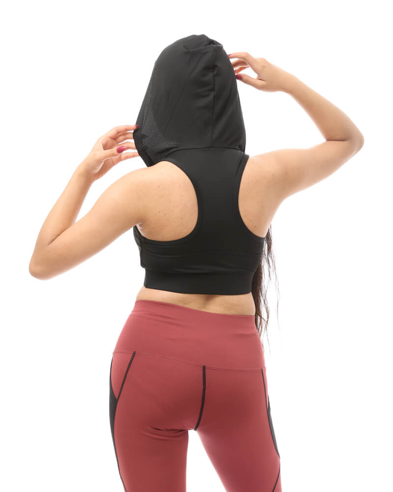 The Sports Bra is designed with functionality and comfort in mind. It features elastane for extra strength, 4-way stretch fabric, and a soft brushed elastic underband for added comfort. Mesh panels offer additional ventilation, and the double-layered design provides added support for medium impact activities. The racerback design allows for freedom of movement, while a short hood adds a touch of energy to your outfit. Other features include breathability, quick-drying capabilities, and body shaping.